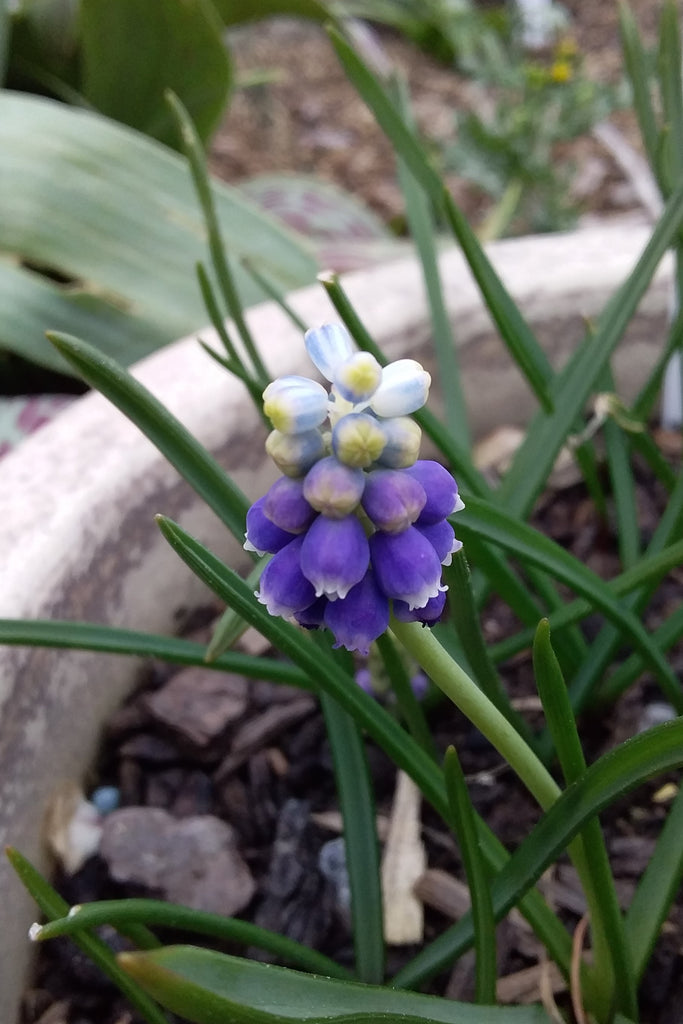 Lovely blue with white tips on a tight flower. Early spring. 10-15cm. Hardy and easy to grow.